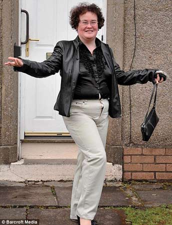 6日,經(jīng)過一番打扮,蘇珊走出家門。面帶招牌式的笑容,蘇珊在自家門前大擺POSE,讓媒體記者拍個夠。開心的蘇珊并沒有注意到當(dāng)時的形象并不得體——她忘記將褲子的拉鏈拉上。由于褲子太緊而拉鏈又沒拉,里面的衣服大有往外擠的陣勢。老式黑色襯衣緊緊地繃在她身上,更凸顯了她的贅肉。