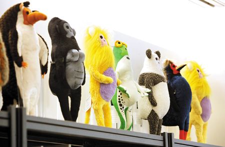 來自高雄的盧袗云與莊瑞豪,兩個年齡相仿,因為熱愛藝術(shù)赴日留學(xué),回臺灣共同創(chuàng)辦“兩個八月”創(chuàng)意設(shè)計公司。一年多來,兩位大男生以一針一線縫出48只動物布偶,做成“沒有生命的動物園”,這些五顏六色布偶的表情與一般可愛布偶很不同,看起來已經(jīng)沒有生命。盧云袗說,“這些布偶主要是教育小朋友,要愛地球,否則可愛動物會面臨死亡威脅!