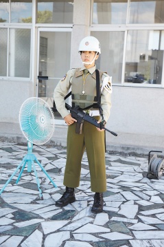 中新網(wǎng)7月1日電 據(jù)臺灣《聯(lián)合報》報道,“憲兵”站崗吹電風扇?這幕顛覆傳統(tǒng)“憲兵”站崗的畫面出現(xiàn)在花蓮空軍基地,一名全副武裝的女大兵,身穿重達1.5公斤的防彈背心,制服密不透風,部隊長官體諒她,炎炎夏日擔心她中暑,貼心提供風扇為她消暑。
