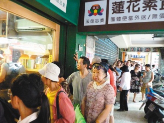 來自北市景美的吳姓婦人說,從上午11時開始排隊到下午2時才排到,雖然在騎樓下排了這么久但相當值得,自己全家都吃素,相當感謝老板和這位神秘客的愛心。
