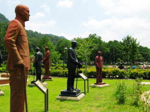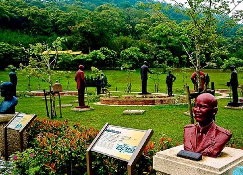 教授告訴我,這個雕像群落多達兩百余座蔣介石雕像,因上世紀90年代后期“去蔣化”運動,各地矗立的銅像紛紛拆除,面臨回爐煉銅的命運。慈湖所在的桃園縣當時正值“藍營”執(zhí)政,于是將各地拆除的銅像收來,選出其中藝術水準較高者,建成雕塑群。