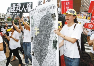 中新網(wǎng)8月12日電 “日本政府,道歉賠償!”日本首相菅直人前天向韓國(guó)道歉“曾經(jīng)殖民支配”,臺(tái)灣婦女救援基金會(huì)、臺(tái)灣戰(zhàn)俘營(yíng)紀(jì)念協(xié)會(huì)等民間團(tuán)體,11日赴“日本交流協(xié)會(huì)”前抗議并要求完成“歷史記憶拼圖”,不過(guò)交流協(xié)會(huì)代表僅接下抗議信,不愿完成拼圖。