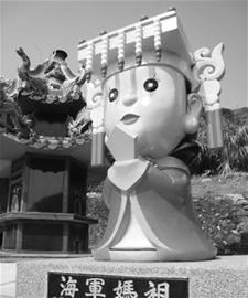 除了天顯宮,與臺軍方關(guān)系相當密切的廟宇,還有蘇澳中正軍港內(nèi)的媽祖廟進安宮。30多年來,進安宮成為當?shù)毓俦男叛鰧ο,各型軍艦進港都會前往祈福。去年底蘇澳民眾請示媽祖后,還捐資建立了一座高達3米的“海軍媽祖”石像(如圖),成為軍港的地標,據(jù)稱歷任海軍高級將領(lǐng)幾乎都會來這里上香。作為全臺唯一軍方與地方共管的廟宇,民眾到進安宮參拜媽祖,還要先登記,并且只有假日才能進香。