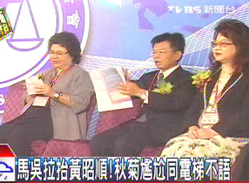 中新網(wǎng)9月5日電 據(jù)臺灣TVBS電視臺報道,大高雄市長選舉,綠營陳菊、楊秋興爆發(fā)內(nèi)訌,2人連坐同一部電梯,也絲毫沒有互動,相敬如冰。
