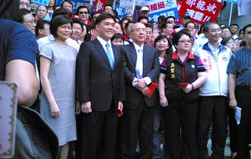 年底臺(tái)北市長選舉,身陷“花博風(fēng)暴”的臺(tái)北市長郝龍斌重整市府團(tuán)隊(duì),由市衛(wèi)生局長邱文祥代理副市長職務(wù)。登記參選時(shí),國民黨方面包括前主席吳伯雄、副主席詹春柏、秘書長特別顧問趙少康、前悠游卡董事長連勝文、國民黨籍“立委”蔣乃辛、鄭麗文、蔡正元等人,到市選委會(huì)幫郝龍斌加油打氣。