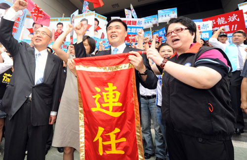 郝龍斌致詞時(shí),先向在場人士深深一鞠躬。他說,在風(fēng)風(fēng)雨雨、紛紛擾擾的時(shí)刻,還有這么多人支持他,令他感動(dòng)。最近許多市民都請(qǐng)他“一定要挺住”,讓他更加深爭取連任的決心。為了臺(tái)北市民的福祉、臺(tái)灣未來的走向,一定全力以赴。郝龍斌多次高呼“一定要贏、一定會(huì)贏”,現(xiàn)場歡呼聲四起。