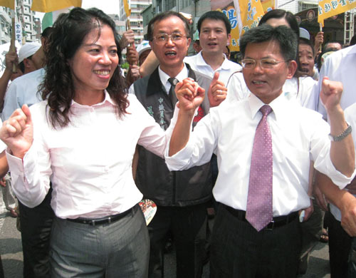 中新網(wǎng)9月17日電 據(jù)臺(tái)灣“今日新聞”報(bào)道,退出民進(jìn)黨參選高雄市長的高雄縣長楊秋興,16日由妻子林淑芬及縣議會(huì)無黨籍聯(lián)盟黨團(tuán)召集人黃明河等多位議員陪同完成大高雄市長參選登記。楊秋興呼吁大高雄鄉(xiāng)親共同改寫歷史,以選票終結(jié)政治內(nèi)耗、藍(lán)綠惡斗。