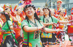 昨天,在南京人氣最旺的新街口,回蕩著《阿里山的姑娘》、《外婆的澎湖灣》等耳熟能詳?shù)呐_灣樂曲。