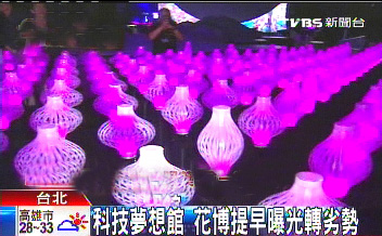 中新網(wǎng)9月25日電 據(jù)臺(tái)灣TVBS電視臺(tái)報(bào)道,臺(tái)北花博顧問(wèn)團(tuán)25日第3度到花博園區(qū)視察,了解相關(guān)營(yíng)運(yùn)狀況。花博也搬出秘密武器,由“工研院”研發(fā)的電子草,配合光影和音樂(lè)跳舞,還有夢(mèng)想魔法的互動(dòng)區(qū),透過(guò)民眾的雙手,就會(huì)看見裸視3D屏幕產(chǎn)生變化。