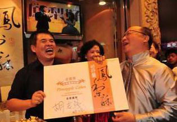 胡志強說,她的太太邵曉鈴就讀大甲鎮(zhèn)東陽小學,所以他也是大甲的女婿,今年裕珍馨參加2010菠蘿好酥獲獎后,他也因而認識了裕珍馨老板陳裕賢,知道他很用心制作,制作過程也很衛(wèi)生,所以主動要求為裕珍馨的產(chǎn)品代言,希望把好產(chǎn)品推銷給全世界的消費者。