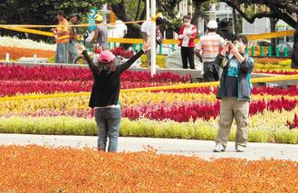 中新網10月9日電 據臺灣《聯合晚報》報道,臺北花博會今天起展開4階段開園測試,今天上午首先開放5000名測試志工進入圓山公園區(qū)。圓山展區(qū)種植超過625萬株花卉,放眼望去片片花海,其中占地近一公頃的“地景花!保陀薪60萬株花,令首次入園的志工驚艷不已。