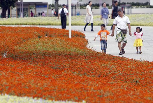 中新網(wǎng)10月19日電 據(jù)臺(tái)灣《中華日?qǐng)?bào)》報(bào)道,臺(tái)北花博會(huì)第二階段測(cè)試昨天因逢禮拜一,三個(gè)園區(qū)共有近兩萬(wàn)人次參觀,夢(mèng)想館與夢(mèng)想劇場(chǎng)最少需排隊(duì)三十分鐘才能進(jìn)入,其余展館則動(dòng)線都順暢。