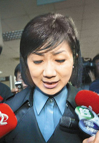 針對(duì)陳水扁、吳淑珍因陳敏薰人事案被判刑8年,陳敏薰表示尊重臺(tái)“最高法院”判決。圖為她被控涉賄扁家作偽證出庭,訊后哽咽落淚。 圖片來(lái)源:臺(tái)灣《中國(guó)時(shí)報(bào)》