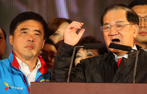 連勝文站臺(tái)輔選遭槍擊中彈 連戰(zhàn)哽咽吁挺郝龍斌