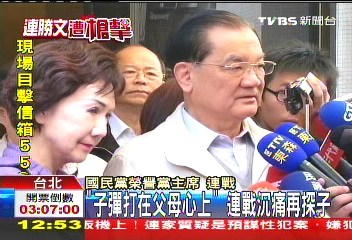 連戰(zhàn)表示,身為父母疼在心里,彈打在連勝文身上,但疼在家人的心里,也疼在社會(huì)各界大家的心里,非常不舍。