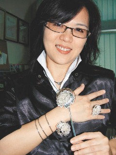 中新網(wǎng)11月1日電 臺灣樹德科技大學(xué)生活產(chǎn)品設(shè)計系專任講師楊彩玲,以純熟的金工技藝挑戰(zhàn)金庸文學(xué),讓大師筆下個性迥異的“女角兒”走出書本,幻化為當(dāng)代金工飾品,展露絕妙文化創(chuàng)意。