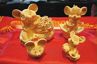 據(jù)臺(tái)灣《聯(lián)合報(bào)》報(bào)道,當(dāng)?shù)匾晃唤痫棙I(yè)者表示,明年農(nóng)歷傳統(tǒng)12生肖又重新由鼠年開始,金飾又深獲島內(nèi)民眾喜愛,因此今年金飾設(shè)計(jì)走俏皮及喜氣風(fēng)格,將不甚討好的老鼠變成金光閃閃、既生動(dòng)又可愛的卡通版造型,主要有卡通鼠、家鼠、錢鼠及袋鼠等造型,花樣多變。