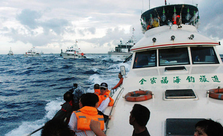 馬英九當(dāng)局的強(qiáng)硬態(tài)度,讓保釣人士格外興奮。黃錫麟等人再次出海保釣,也沒(méi)有遭遇任何阻攔。臺(tái)灣保釣行動(dòng)聯(lián)盟12名成員及30名隨行記者,登上“全家!碧(hào)海釣船,前往釣魚(yú)島宣示“主權(quán)”。一路上還有臺(tái)灣“海巡署”的軍艦保護(hù)。