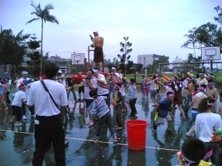 據(jù)臺灣“中廣新聞”報道,為加強蘭雨節(jié)的先期營銷,也為揭示蘭雨節(jié)的超低票價,宜蘭縣長呂國華率領(lǐng)二百多名學(xué)童打水仗。一聲令下,千粒水球在空中齊飛,呂國華手持水槍,率領(lǐng)二百多名學(xué)童,和兩位仿效“蘭雨節(jié)”活動標志、裝扮成寒單爺、手持姑婆芋的“歡樂雙驕”打水仗。
