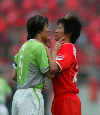 在這篇名為“中國(guó)足球隊(duì)長(zhǎng)李瑋峰——從以前起就是鎖喉王子”的專題文章中,球迷逐一貼出了李瑋峰在各場(chǎng)中超聯(lián)賽中施展“鎖喉功”的圖片,以及在2008年?yáng)|亞足球賽上“大頭”對(duì)日本隊(duì)前衛(wèi)鈴木啟太動(dòng)手的一幕。文末還附上了李瑋峰為國(guó)內(nèi)某體育雜志拍攝的系列“鎖鏈照”。圖中的李瑋峰裸露上身、肌肉虬張,配上日媒“最強(qiáng)暴力后衛(wèi)登陸J聯(lián)賽”的新聞稿,更增爆笑效果。