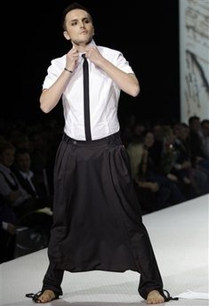 10月24日在莫斯科舉行的時(shí)裝周讓人大開(kāi)眼界,模特們拋開(kāi)舞臺(tái)上的矜持,用夸張的步伐、神態(tài)和自由的發(fā)揮展現(xiàn)另類(lèi)服裝的另類(lèi)魅力。