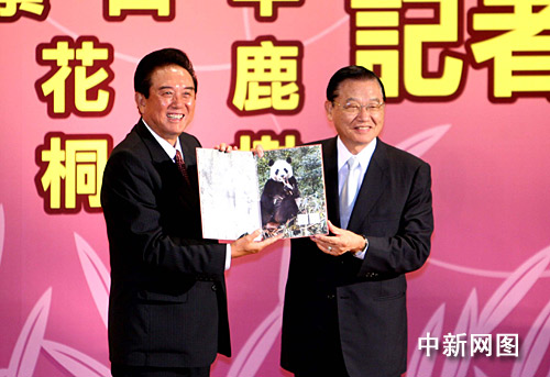 中新網(wǎng)臺北11月6日電 大陸海協(xié)會會長陳云林與臺灣海基會董事長江丙坤今日上午在臺北出席兩岸互贈珍稀動植物記者會,大陸贈送的除了大熊貓“團團”、“圓圓”外,還有珙桐樹,臺灣方面回贈的是長鬃山羊和梅花鹿。