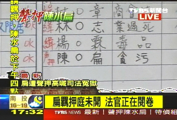 中新網(wǎng)11月11日電 據(jù)臺灣TVBS電視臺報道,陳水扁經(jīng)過近7小時偵訊后,在今天下午4點35分遭到臺灣檢方聲押,隨即被移送到臺北地方法院,而法院正在閱卷,閱卷后將開聲押庭,時間可能是在晚間8點,將決定是否正式收押陳水扁。