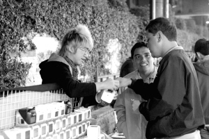 記者觀察,夜市的消費(fèi)者多為二三十歲的年輕人,女性也有不少,還有一些像記者這樣慕名而來體驗(yàn)一下夜市風(fēng)情的游客,但這部分人比例不算大。據(jù)介紹,在臺(tái)灣,逛夜市的大部分都是本地居民,夜市對(duì)于他們來說,不但是可以大快朵頤填飽肚子的地方,同時(shí)也是很好玩的地方,逛街,殺價(jià),打打彈珠、撈撈金魚,在眾人的圍觀下為自己剪一幅栩栩如生的剪影,在各種具有玩樂性質(zhì)的攤位上試試手氣,這些,都很適合一家老少共同出游消磨一晚的時(shí)光。