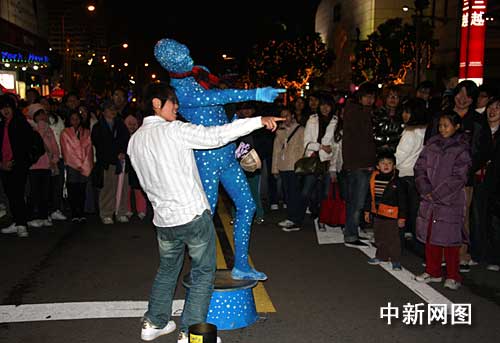 跨年夜的臺(tái)北市街頭舞蹈家。中新社記者 陳立宇/攝