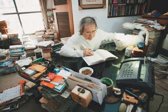 南方朔家里像座小型圖書(shū)館,書(shū)房里一排排頂天立地的書(shū)架,像學(xué)問(wèn)家的神圣祭壇,不可造次;但家犬“狗狗”除外。它舒服地把窩放在書(shū)林間,同享安穩(wěn)。狗窩與書(shū)房并不互斥。