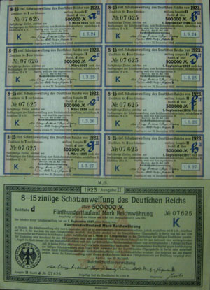 臺(tái)北市的蘇文朗,當(dāng)年祖父是士林紙廠的干部,他五歲時(shí),曾看過(guò)祖父拿出兩張鈔票大小的“彩色紙片”用來(lái)包煙草。當(dāng)時(shí)他好奇地纏著祖父問(wèn),這些“圖畫(huà)紙”是哪里來(lái)的。祖父抽了一口煙,緩緩地說(shuō):“這不是圖畫(huà)紙,是外國(guó)錢!痹瓉(lái)祖父當(dāng)年奉命要以馬克債券作為紙廠員工工資,但心軟的祖父預(yù)感這些“外國(guó)錢”兌換無(wú)門,因此家境富裕的他,干脆自掏腰包發(fā)薪水,而這些馬克債券就成了祖父嘴邊的彩色煙卷。