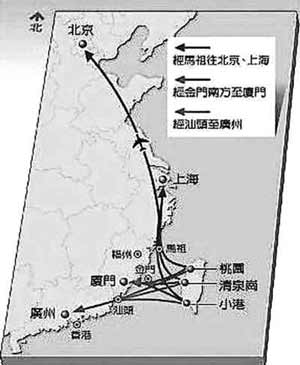 剛剛結(jié)束的兩岸清明包機(jī),已經(jīng)無需在香港機(jī)場轉(zhuǎn)機(jī),但飛機(jī)仍需繞經(jīng)香港飛航情報(bào)區(qū),這意味著從臺灣到廈門、上海及北京都繞了一個(gè)大大的圈子。相比而言,國民黨智庫此次規(guī)劃的周末包機(jī)取消了繞行香港飛航區(qū)的限制。
