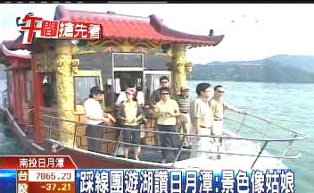 據(jù)臺(tái)灣TVBS報(bào)道,大陸踩線團(tuán)到日月潭觀光,當(dāng)然不會(huì)錯(cuò)過搭船游湖這個(gè)行程。2艘豪華游艇,早就在湖邊等候,等待踩線團(tuán)成員一上船,直奔邵族祖靈地那魯島。