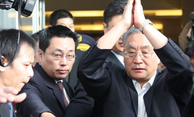 張銘清離臺前雙手合十感謝臺灣民眾的關(guān)心。