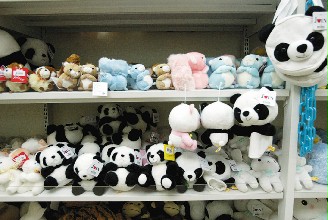 大陸贈臺熊貓團(tuán)團(tuán)、圓圓23赴臺,臺北市立動物園的紀(jì)念品早就有“團(tuán)團(tuán)、圓圓”的蹤影,各式樣熊貓的紀(jì)念品被放在明顯的位置,等候民眾購買。圖片來源:臺灣《聯(lián)合晚報》