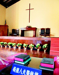 據(jù)《聯(lián)合報(bào)》六日?qǐng)?bào)道,日月潭管理處處長(zhǎng)曾國(guó)基表示,“耶穌堂”位在水社的荷梅園中,管理處近日推出優(yōu)惠結(jié)婚方案,新人還可漫步廊道,飽覽日月潭的湖光山色,晚間欣賞水舞表演。而近日正逢櫻花季,走過櫻花隧道到教堂結(jié)婚,別具風(fēng)味。