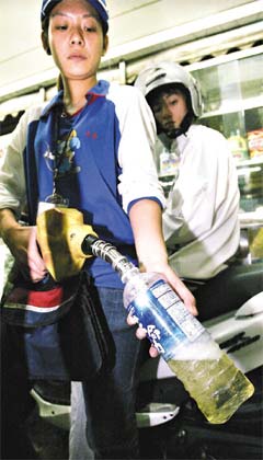 “中油”主管表示,消費(fèi)者若要求把油裝在寶特瓶帶走,加油站通常不能拒絕,頂多只能柔性勸導(dǎo)。事實(shí)上,因?yàn)槊垦b一公升寶特瓶的汽油,最多只能省八角,省的錢不多,但風(fēng)險(xiǎn)極高,因?qū)毺仄垦b汽油易溶化,只要漏一點(diǎn)油出來(lái),遇到高溫就會(huì)引爆,寶特瓶囤油罐很容易變成汽油炸彈。