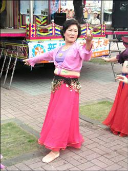 據(jù)臺灣媒體報道,袁林秀鳳報名學(xué)習(xí)肚皮舞才兩個學(xué)期,但跳起舞來已頗具架式。她說,自從40歲起跳土風(fēng)舞至今,65歲起又學(xué)瑜伽,深知運動好處多多。