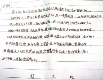他在警訊時(shí)淚如雨下說(shuō):“我真的知道錯(cuò)了!”同學(xué)新年后用紅包買新手機(jī),他很羨慕,才會(huì)一時(shí)起貪念偷手機(jī),之后整晚睡不著。想起老師講過(guò)“華盛頓砍櫻桃樹”的故事,覺(jué)得自己也應(yīng)該勇于認(rèn)錯(cuò),于是邊哭邊寫道歉信。