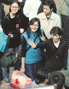 排隊(duì)等候時(shí)間,兩位女兒馬唯中與馬元中多半維持酷酷的模樣,從頭到尾拎著自己的行李與禮品,不假他人之手。周美青與兩位女兒短暫相處三十五個(gè)小時(shí),排隊(duì)時(shí)三人偶爾也竊竊私語。