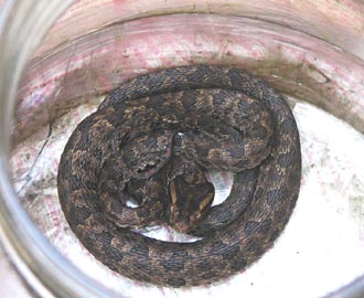 臺一男子在住家處抓到的含劇毒的龜殼花。(圖片來源:臺灣《聯(lián)合報》)
