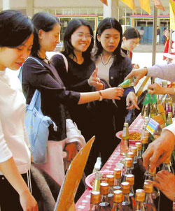有男同學(xué)便起哄要跟賴(lài)某打賭,假如她有辦法一口氣喝光一整瓶高粱酒,就贏六百元新臺(tái)幣的獎(jiǎng)金;極有酒膽的賴(lài)某也不遲疑,直接仰頭喝酒,男同學(xué)鼓掌叫好。