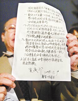 律師展示吳淑珍發(fā)表三點聲明的親筆簽名。
