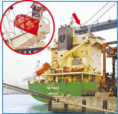 基隆港務(wù)警察局調(diào)查,陽明海運(yùn)公司承租的9000噸、塞浦路斯籍“YM FA HA”貨輪19日從香港載貨后,清晨駛?cè)牖「郏2礀|八碼頭卸貨。