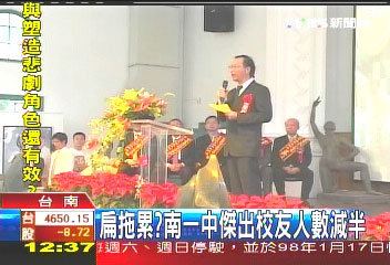臺(tái)當(dāng)局“立法院長(zhǎng)”王金平作為臺(tái)南一中杰出校友出席校慶,致詞時(shí),特地針對(duì)杰出校友一事,詳加說(shuō)明。往年總是選出10位杰出校友,今年只有5位,人數(shù)減半,外界質(zhì)疑,是否跟涉及洗錢(qián)弊案的杰出校友陳水扁有關(guān)?王金平則表示,“這我不知道,我們瑕不掩瑜!