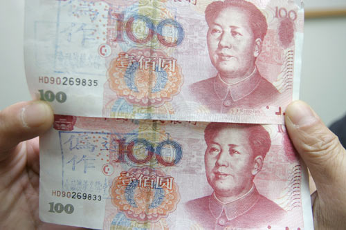 據(jù)“中央社”報道,臺灣數(shù)家機場金融機構分別在5日和12日發(fā)現(xiàn)部分臺商使用HD90開頭的偽造百元人民幣紙鈔,各有1張和2張,但紙質和防偽線異常,一眼就被行員識破,行員登記旅客個人資料后將偽鈔沒入。