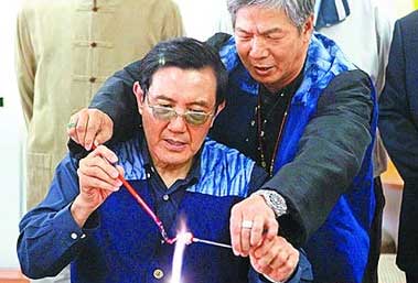 中新網(wǎng)2月9日電 據(jù)臺灣媒體報道,馬英九8日參訪臺灣工藝文化園區(qū),進行一趟臺灣工藝之旅。馬英九在琉璃老師建議及指導(dǎo)下,親自以琉璃燒制了“一顆心”,準備送給夫人周美青當情人節(jié)禮物。