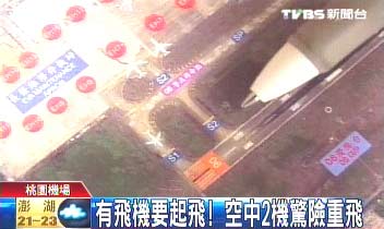 中新網(wǎng)3月1日電 據(jù)臺(tái)灣TVBS報(bào)道,臺(tái)北桃園機(jī)場(chǎng)去年6月才因跑道上有飛機(jī)要起飛,塔臺(tái)緊急通知正要降落的飛機(jī)重飛,驚險(xiǎn)事件在8個(gè)多月后又重演。27日,桃園機(jī)場(chǎng)跑道,一架飛機(jī)機(jī)頭超過跑道停止線,顯示正要起飛,塔臺(tái)緊急通知空中2架正要降落的飛機(jī)重飛,但其中國(guó)泰飛機(jī)機(jī)師因?yàn)槁牪欢形,不知發(fā)生什么事,最后塔臺(tái)又再度溝通,才及時(shí)重飛,有驚無險(xiǎn)。
