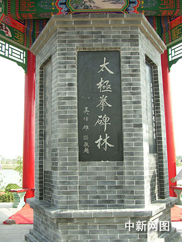 據(jù)介紹,整個(gè)太極文化碑廊東西長一百一十五米,鑲嵌一百四十多塊碑刻。碑廊東要兩端及中間各建一碑亭,吳伯雄先生題寫的“太極拳碑林”及劉炳南先生題寫的“太極文化化碑苑”分別放置在中間碑亭的正南、正北位置。
