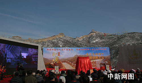 中新網(wǎng)北京11月10日電 (魏恒)經(jīng)過一夜大雪,八達(dá)嶺銀裝素裹。10日上午,兩岸百名抗戰(zhàn)高級(jí)將領(lǐng)后人會(huì)聚長城腳下,將采自著名抗日戰(zhàn)場的土壤放入大鼎,永久保存于長城博物館。